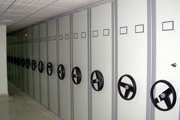 密集柜主要由軌道、底座、立柱(板式)、擱板、掛板、側(cè)靠板、背靠板、頂板、防塵板、護(hù)板、門(mén)板、傳動(dòng)機(jī)構(gòu)、防傾倒、防震、防塵、防鼠、制動(dòng)、緩沖、目錄卡及傳動(dòng)裝置、密封裝置組 成: